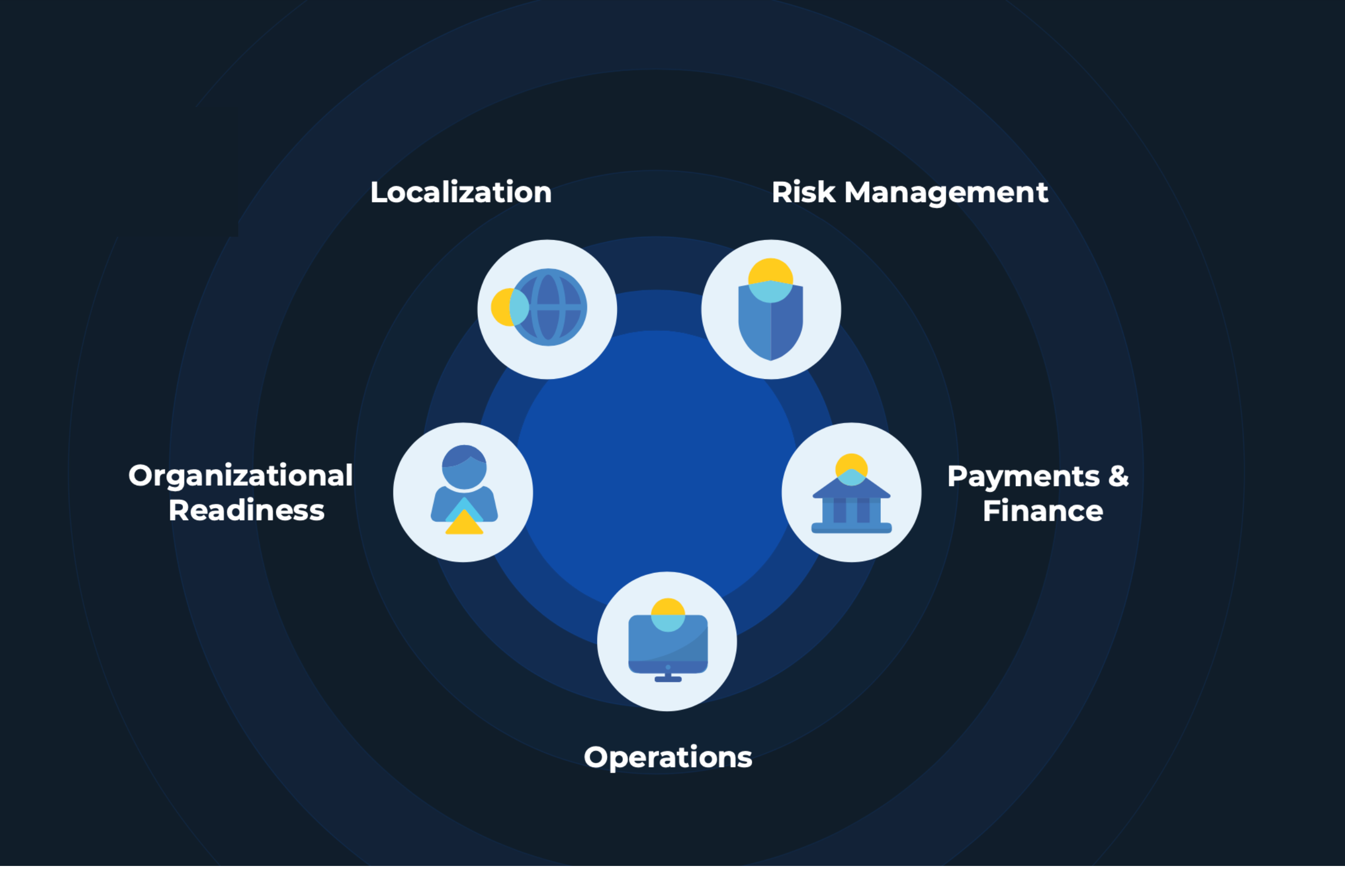 To help businesses of all sizes evaluate their readiness for cross-border commerce and to evaluate the opportunities and risks, Rapyd commissioned a study, the Global Cross-Border Commerce 2022 Guide. Using the results we identified five key elements of Cross-Border Commerce that businesses must address to succeed when growing their sales overseas. These key elements are localization, risk management, payments and finance, operations, and organizational readiness.