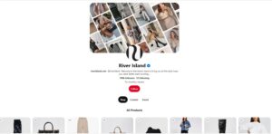 River Island fylgjendur og hugsanlegir viðskiptavinir geta skoðað og keypt öll ‘Products Pins’ sem safnað er saman á aðalsíðu fyrirtækisins.