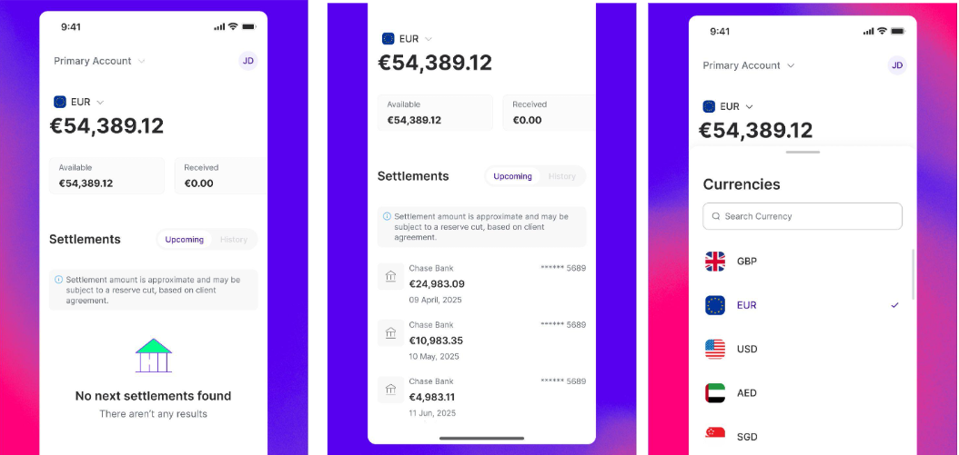 - Quick visibility into settlements and balances