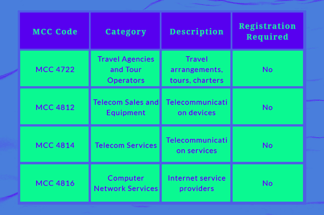 Here’s a general breakdown of MCC ranges and the industries they represent: