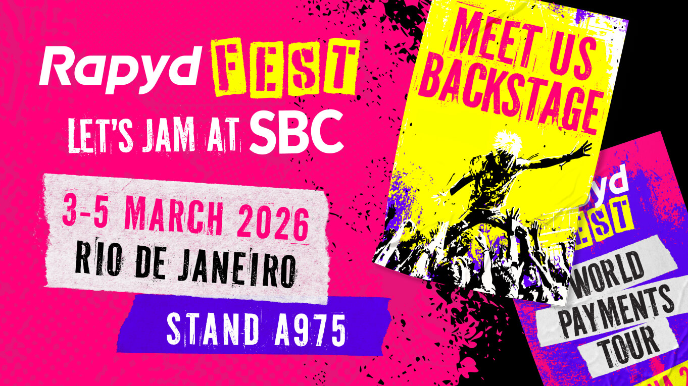 The Rapyd Fest Word Payments Tour is coming to SBC Rio, March 3-5, 2026. Explore global payment and payout solutions at booth A975.